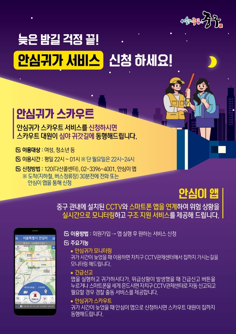 스카우트 대원이 심야 귀갓길에 동행해드립니다.